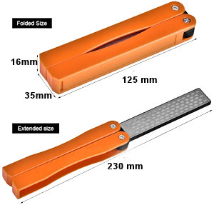 diamond sharpener (much like a butterfly knife) with 400 grit on one side